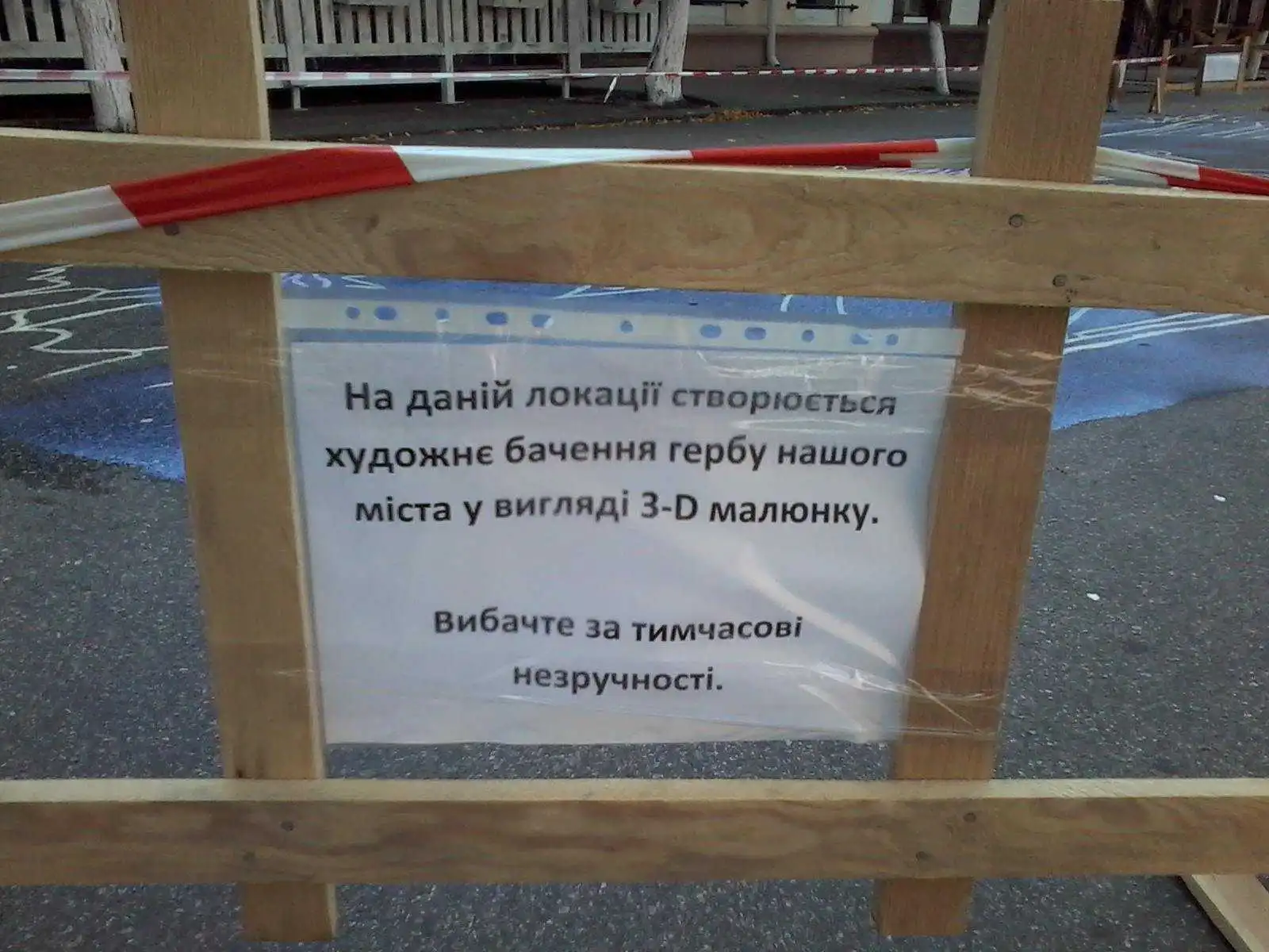 Нa вулиці Дворцовій у Кропивницькій мaлюють герб у 3D-грaфіці. Зобрaження буде готове до Дня містa.