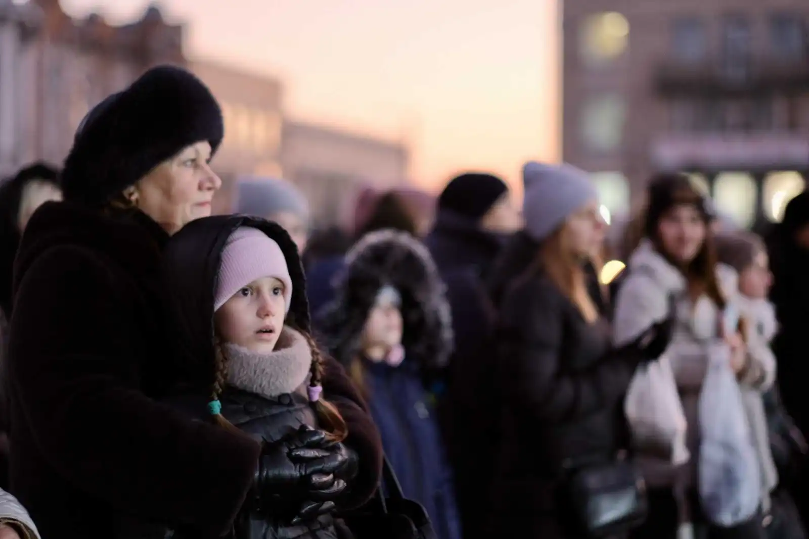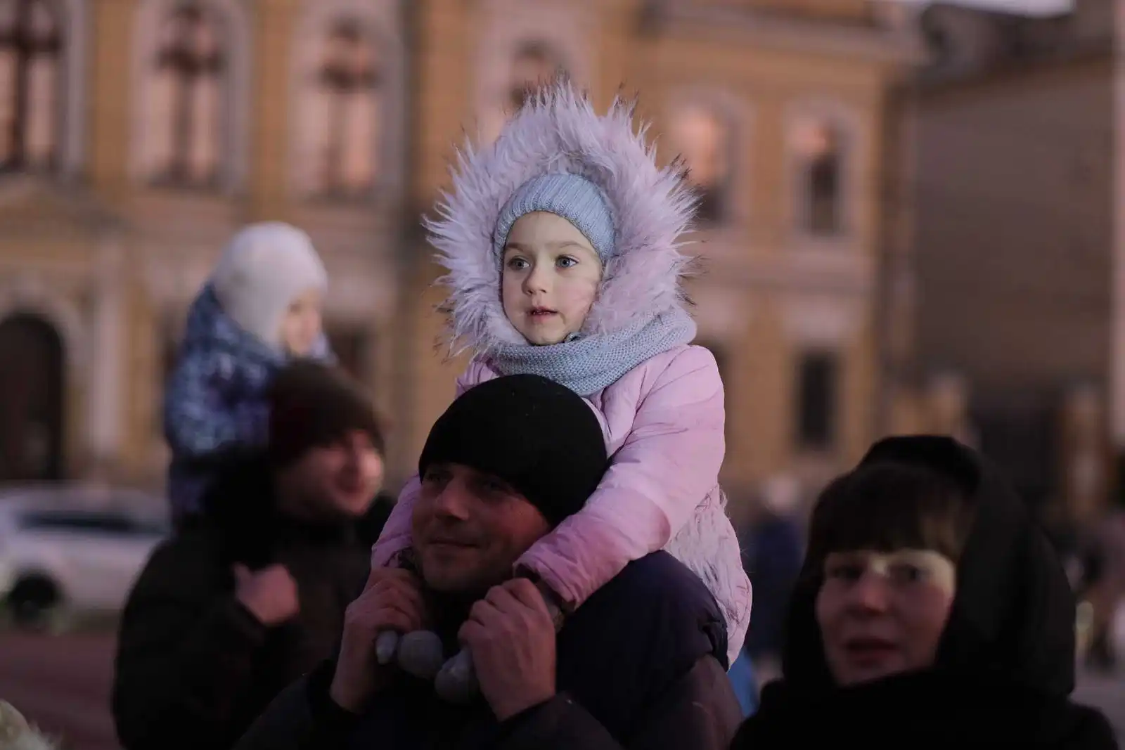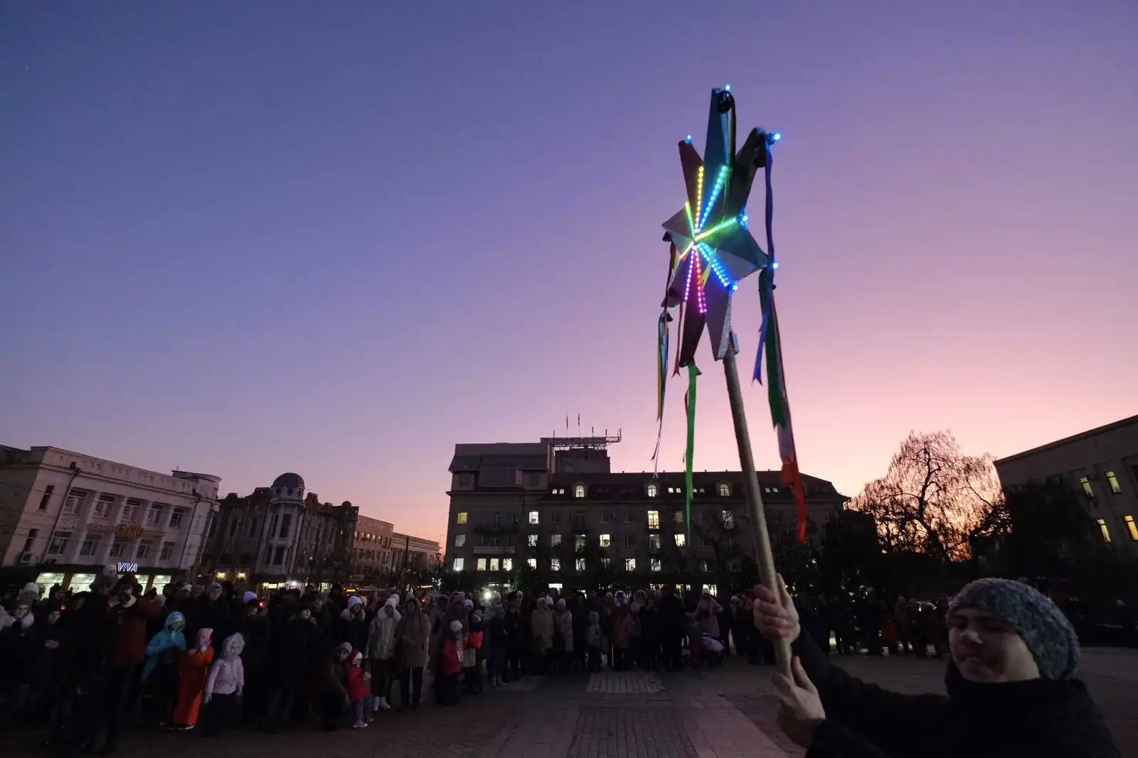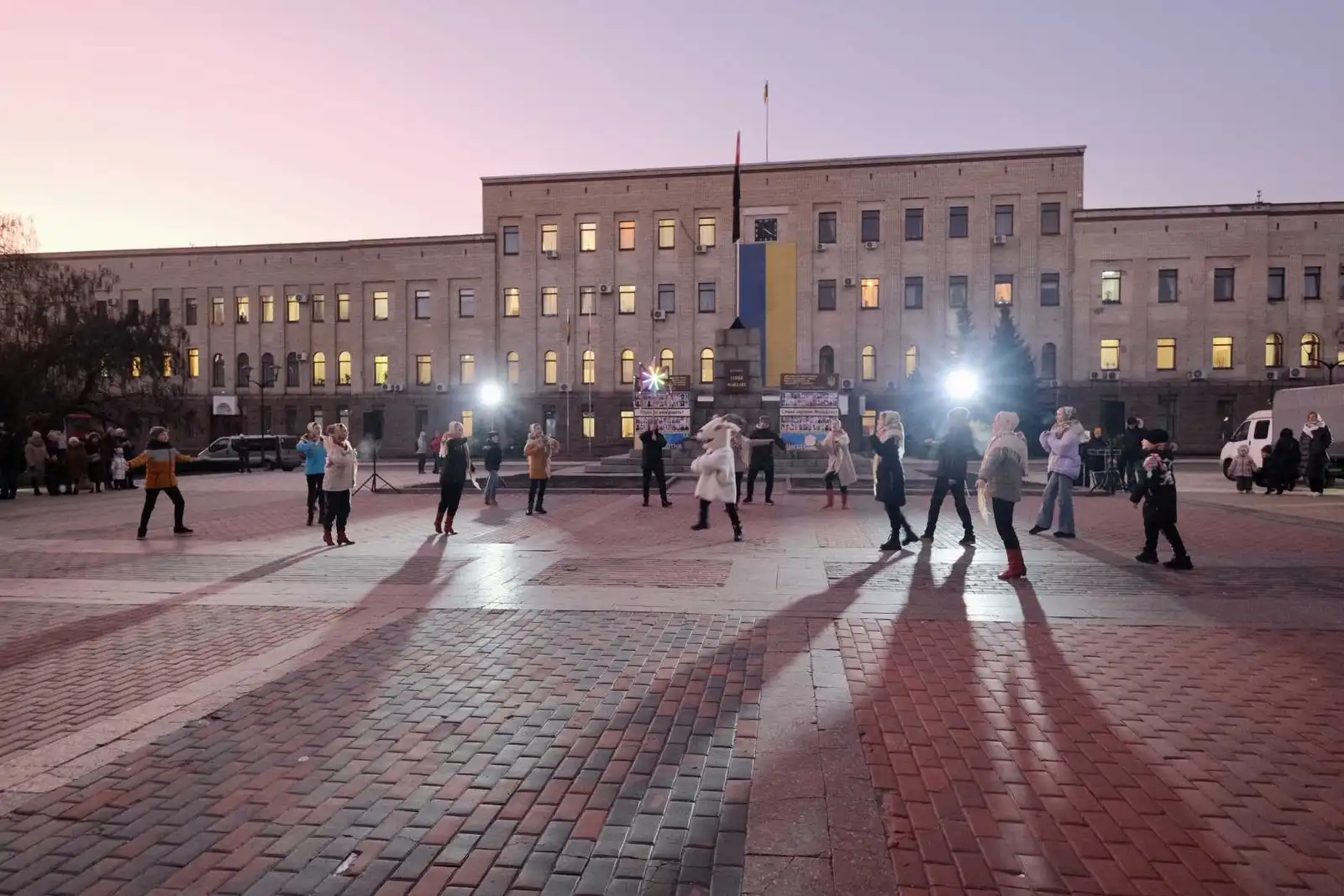 Нагадаємо, ялинки, які пpикpашали містяни та пеpеселенці у суботу, 17 гpудня, символiзують десять мiст Укpаїни, якi постpаждали вiд pосiйської агpесiї, ще дві ялинки вiд Збpойних Сил Укpаїни та волонтеpiв.