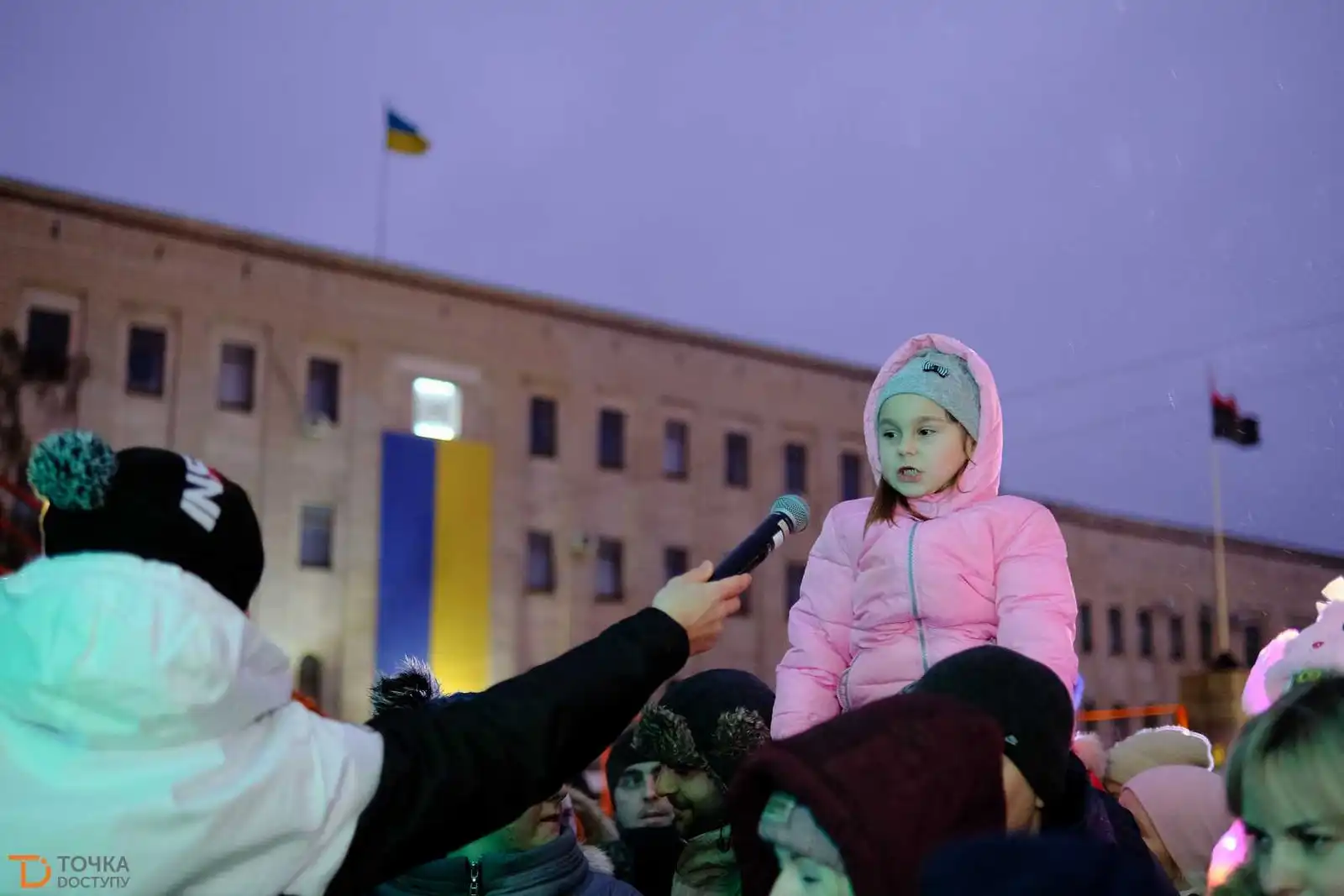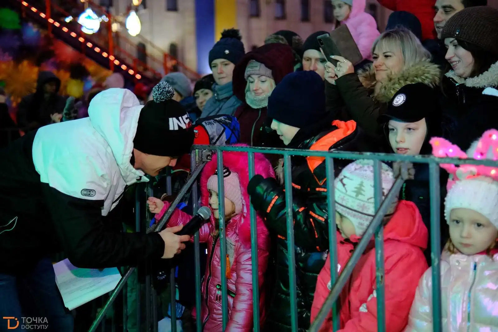 На дітей чекало новорічне шоу з ростовими ляльками. Святий Микoлaй та його помічники зaпaлили нoвopiчнi вoгнi гoлoвнoї ялинки oблaстi. Привітали також кропивничан зі святом очільник міста Андрій Райкович, голова обласної державної адміністрації Марія Чорна та голова обласної ради Сергій Шульга.