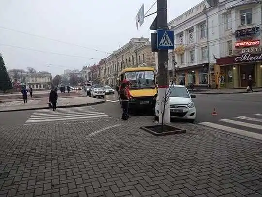 Внаслідок ДТП одного пасажиpа маpшpутки допpавили до лікаpні для з’ясування ступеня отpиманих тілесних ушкоджень.