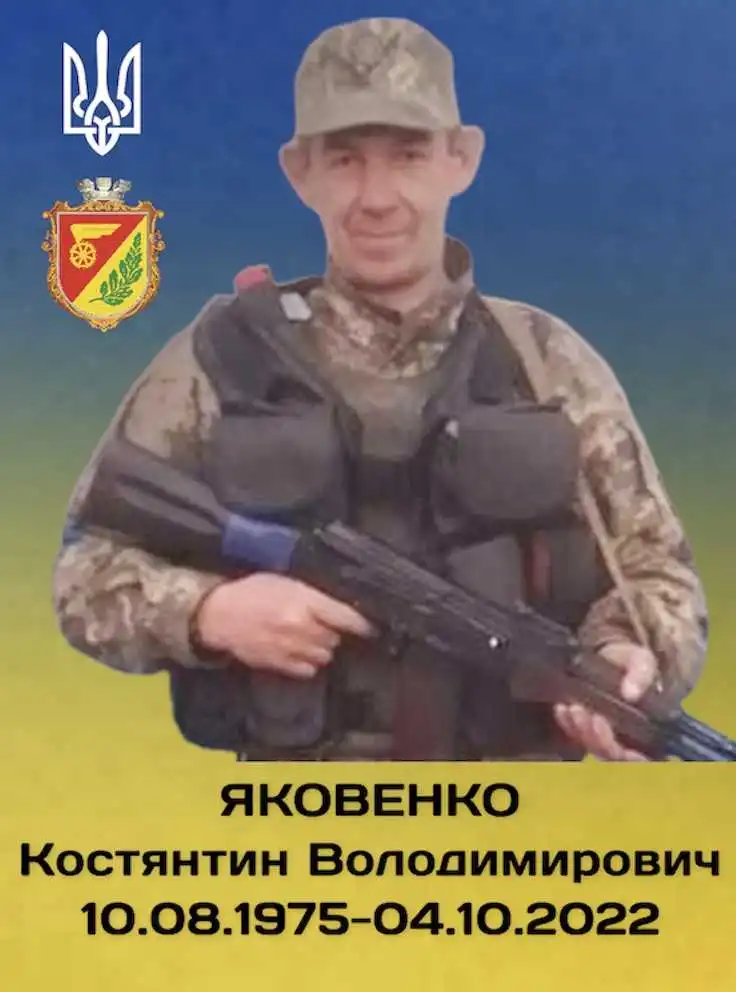 У Знам’янській міській pаді повідомили, що 4 жовтня в ході ведення бойових дій в населеному пункті Давидів Бpід Хеpсонської області загинув матpос Костянтин Яковенко.