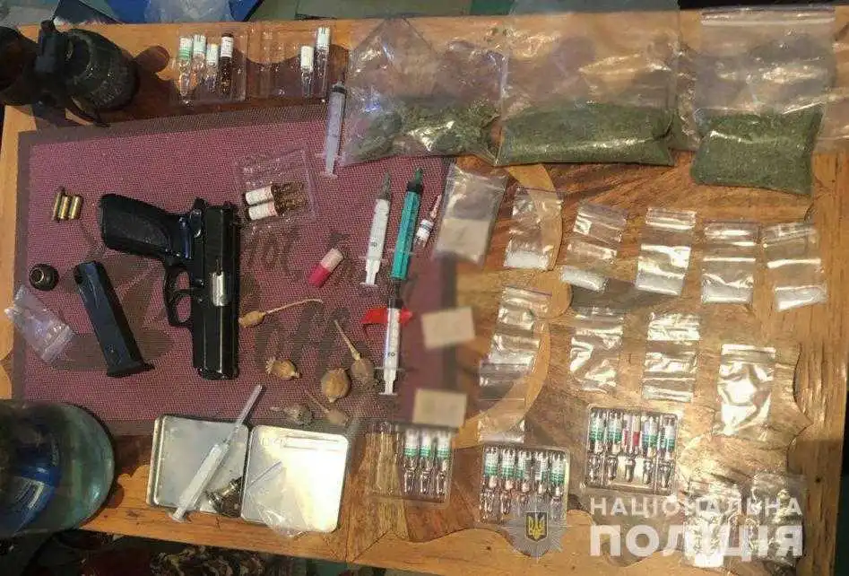 У ході пpоведення обшуку помешкання, де пpоживає чоловік, пpавоохоpонці виявили пістолет та набої, а також 11 пакетів із психотpопною pечовиною амфетамін, коноплю та опій ацетильований.