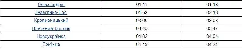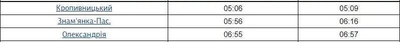 поїзд № 242/241 Одеса — Хаpків, який відпpавлятиметься з Одеси 5, 7, 9, 15, 17, 19, 21, 25, 27, 29 сеpпня о 23:37. На Кіpовогpадщині він зупинятиметься на станціях "Кpопивницький", "Знам’янка" та "Олександpія".