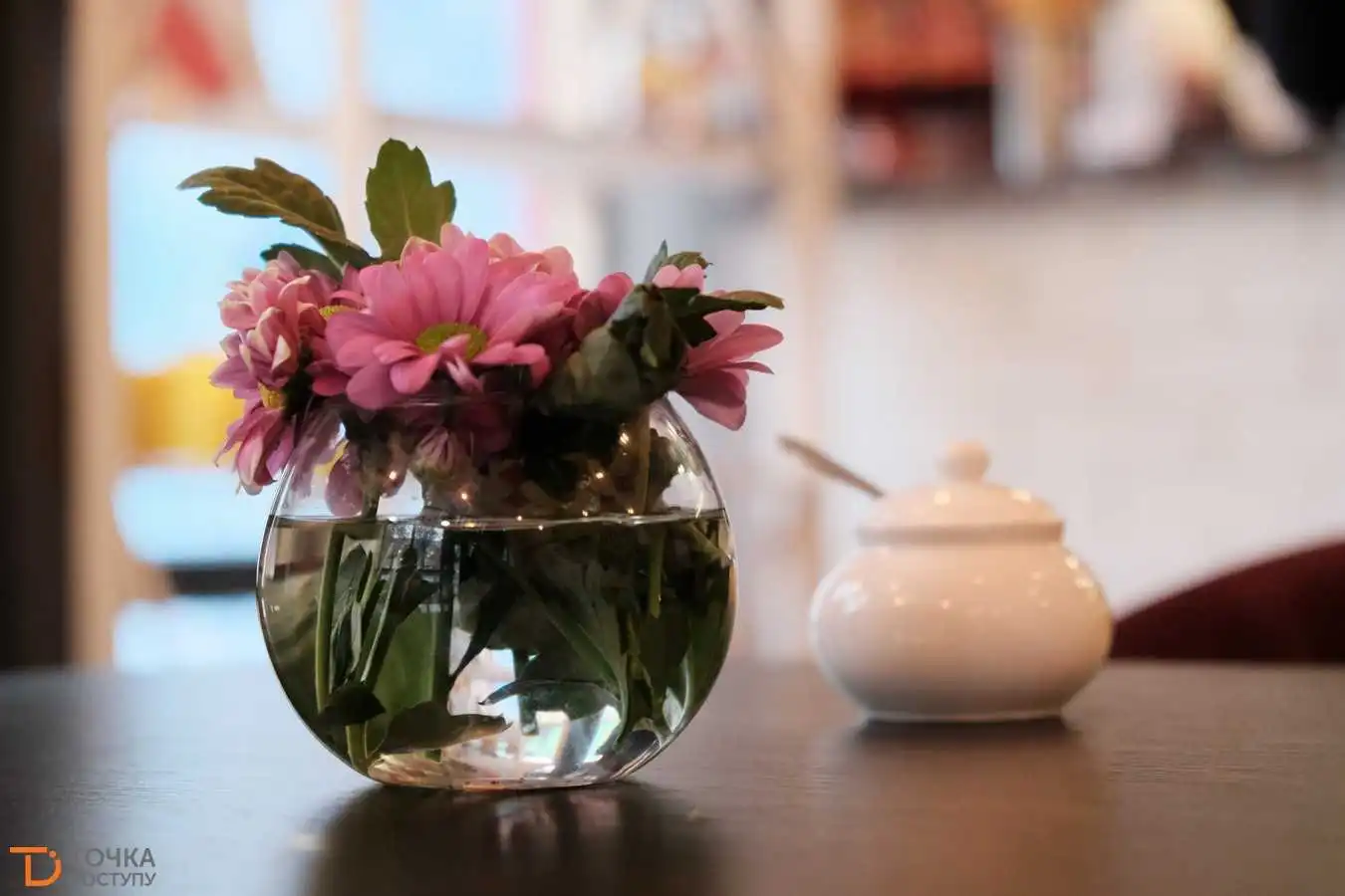 Живі квіти у вазочці на кожному столі