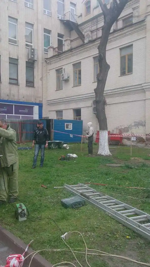 На території біля нашої будівлі проводять незаконне будівництво, у них частково пакет документів зібраний, але немає погодження з боку "Укртелекому". Тому ми викликали правоохоронців, звернулись із заявою і в судовому порядку будемо вирішувати питання про припинення будівництва, – говорить начальник служби безпеки "Укртелекому" Олександр Шепелев.