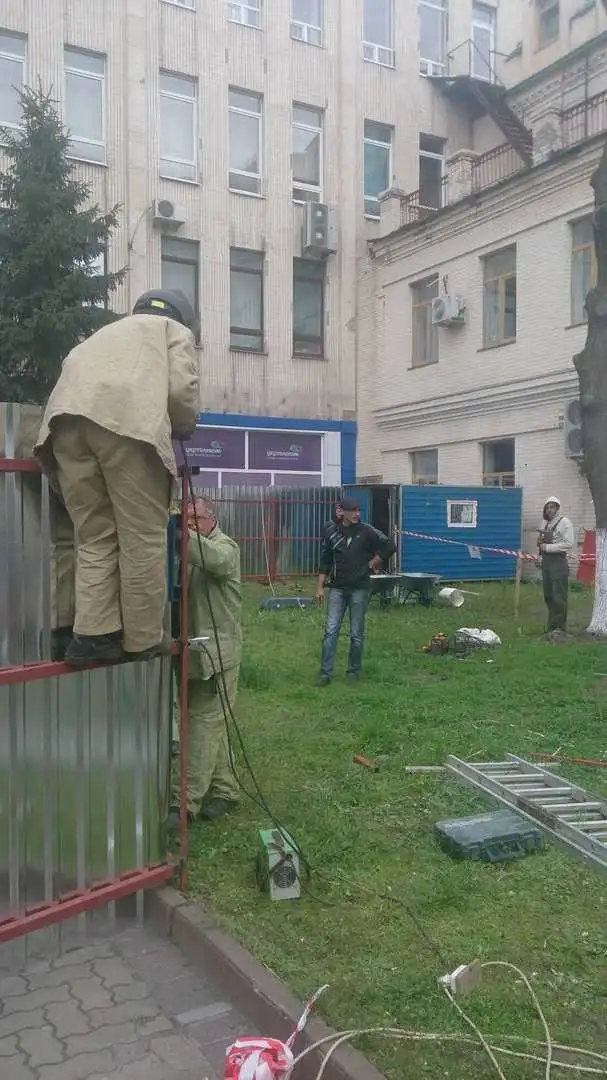 Сьогодні у Кіровограді близько 6 години ранку розпочалося встановлення будівельного паркану на території між будівлями "Укрпошти" та "Укртелекому" по вулиці Великій Перспективній.