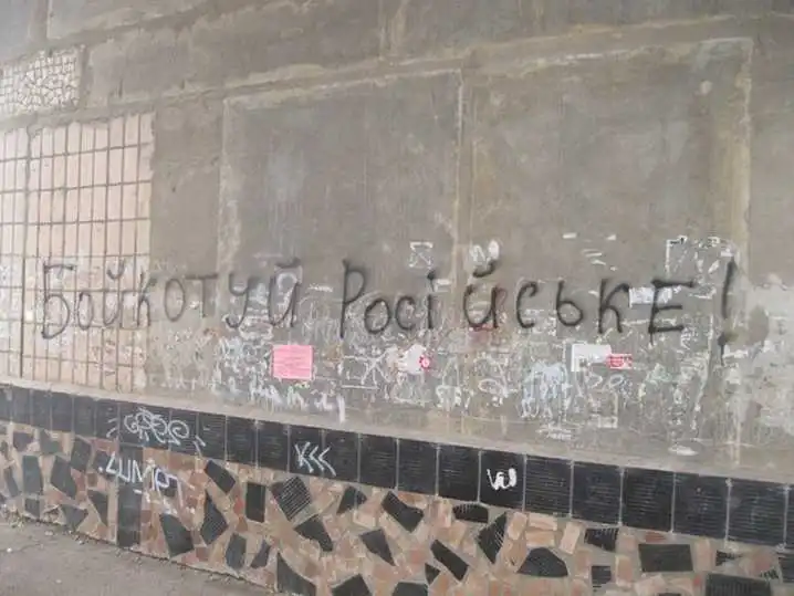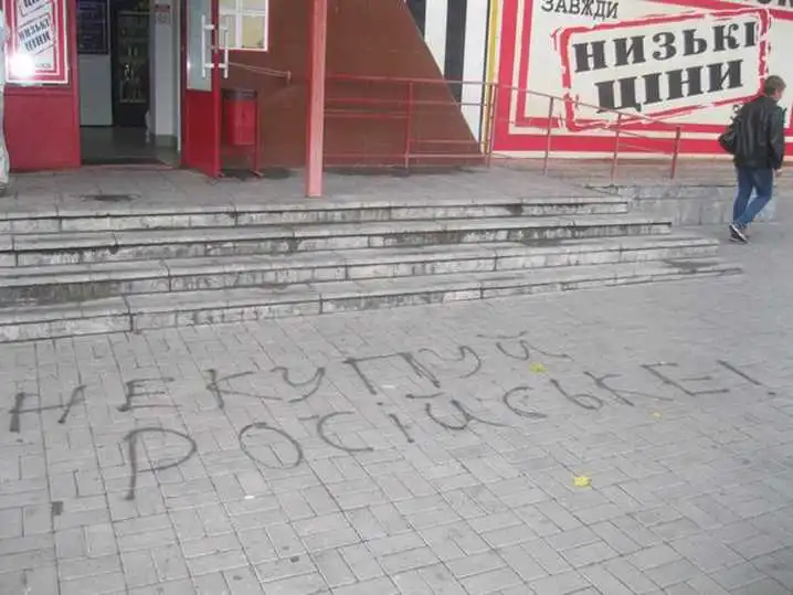 Також заклики до бойкоту російських товарів з'явилися в людних місцях і біля великих магазинів у центрі», - написав Фізик.