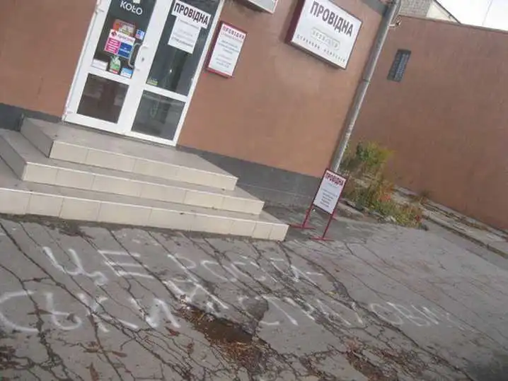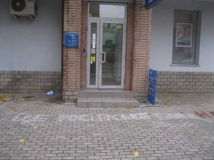 «Дісталося Промінвестбанку, Ощадбанку Росії і ВТБ, працівники останнього днем інтенсивно відтирали написи з тротуару. Не оминули олександрійські патріоти і російську страхову фірму "Провідна".