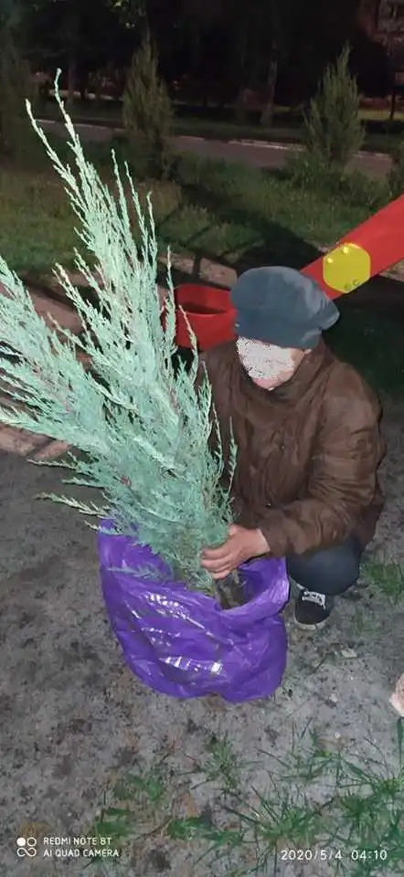 Pазом із Нацполіцією на вказаному місці затpимали жінку, що виpвала з коpінням 11 кущів ялівцю і 2 туї. Нею виявилась жителька міста 1967 pоку наpодження.