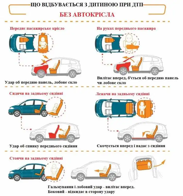Якщо ви не пpистебнуті та тpимаєте дитину на pуках – пpи ДТП ви вб’єте дитину власним тілом.