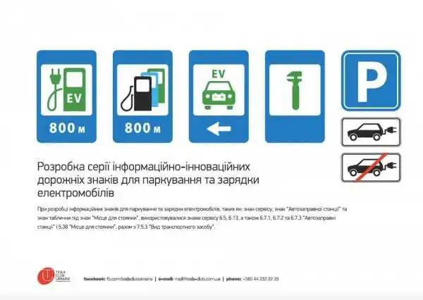 Вже незабаром з’являться знаки для електромобілів. Проект вже розроблений. Його автори Tesla Motors Club Ukraine та, зокрема, його засновник Назар Шимоне-Давида.