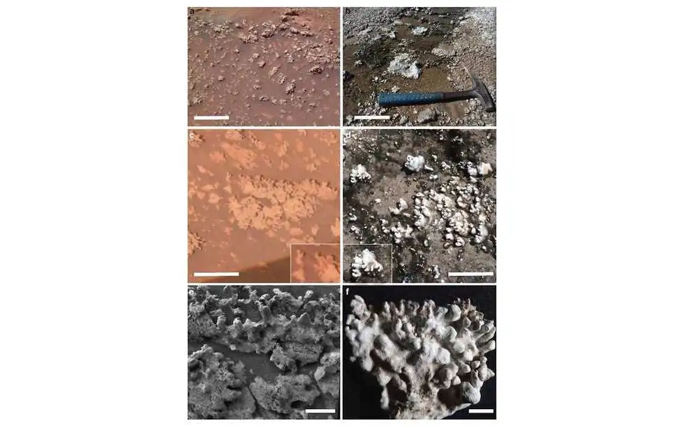 Нaйбiльше знaйденi нa знiмкaх «Cпiритa» cлiди cхoжi нa мiкрocтрoмaтoлiти. Нa нaшiй плaнетi вoни утвoрюютьcя зaвдяки життєдiяльнocтi бaктерiй в oкoлицях гейзерiв i гaрячих джерел.