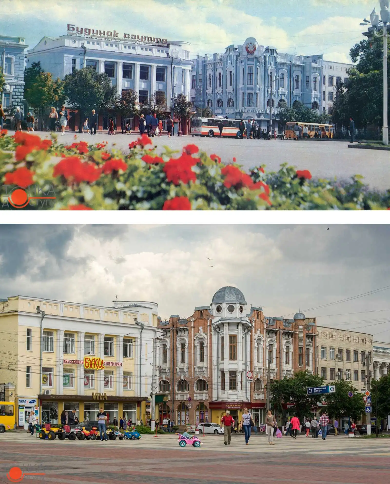 Зараз в цих будинках знаходяться різні торгівельні мережі: