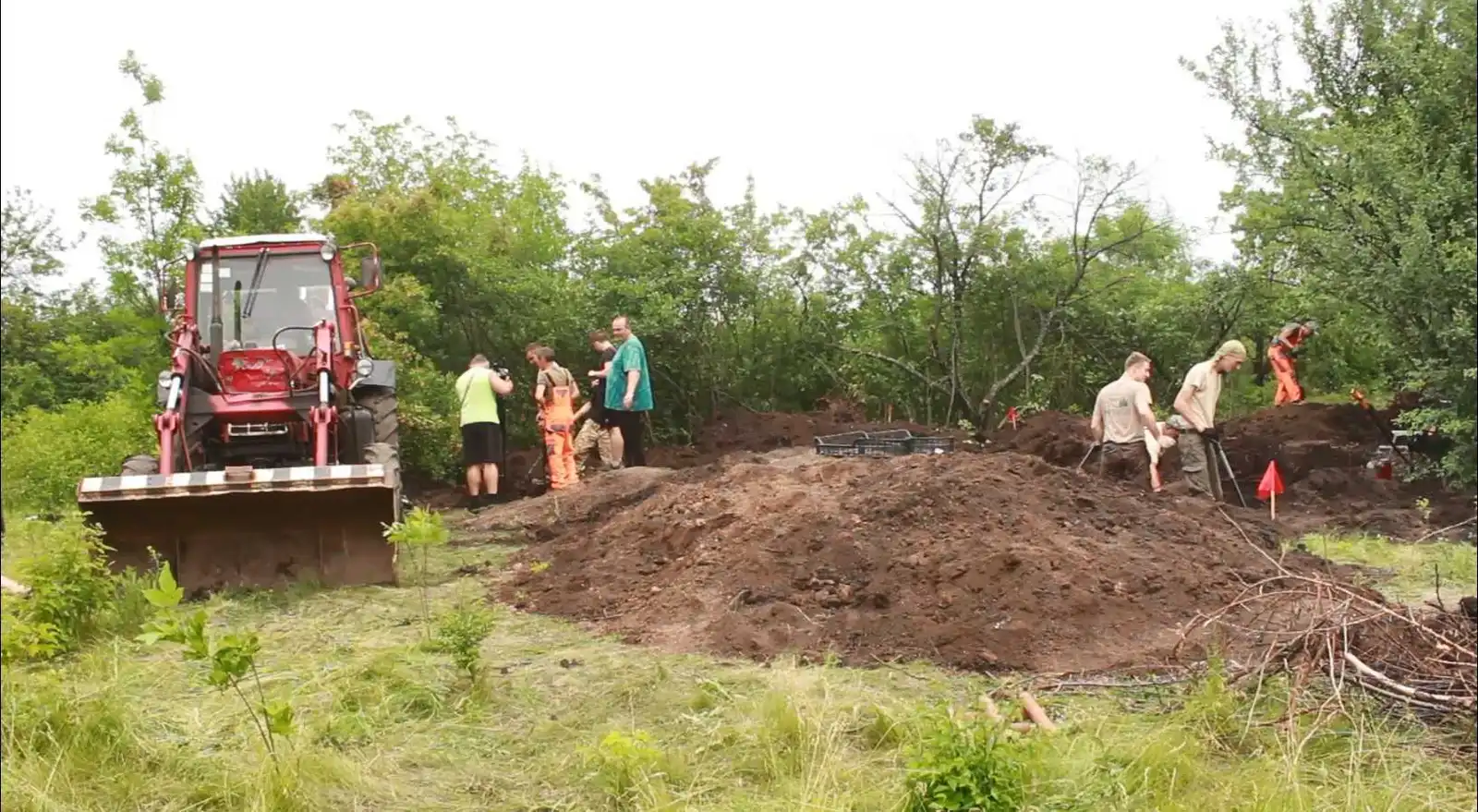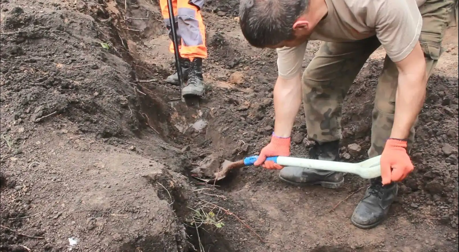 На місці падіння Іл-2 спочатку землю розрили екскаватором – з технікою допомогла місцева влада. Потім все перекопують вручну. За роботою пошуковців спостерігає чоловік із ціпком. Від журналістів ховається, але врешті зізнається – уламки штурмовика знайшов його син – «мисливець за металом».