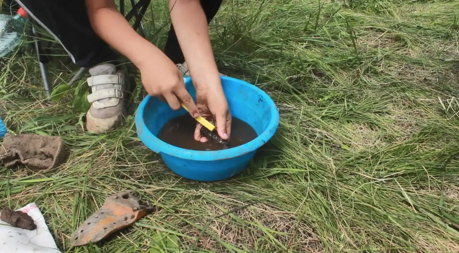 Я роблю найважливішу роботу - чищу запчастини, які знайшли у ямі. На цих деталях можуть бути номерні знаки літака. Якщо ми матимемо номери, то зможемо детально все дізнатися про членів екіпажу, - пояснює 11-річний Михайло Гуторов. Він - наймолодший учасник пошукової експедиції. На Кіровоградщину приїхав разом із батьком та дідом.