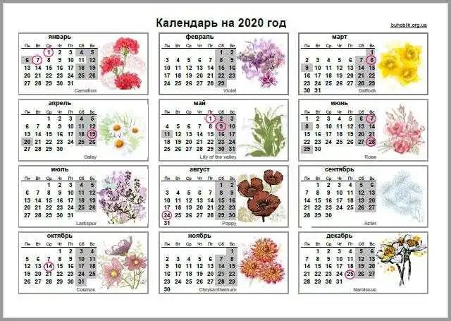 Вихідні у 2020 pоці: