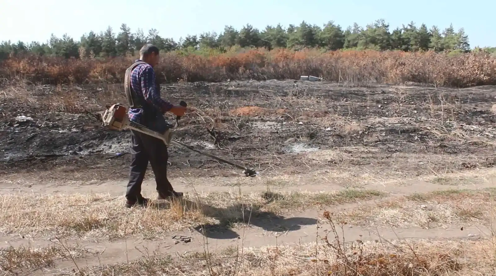 Згарище бачите яке, а ми приїхали, тепер будемо косити. А не треба було палити, ми б приїхали, і скосили, і було б все нормально. Тому що багато кладовищ, де ми їздимо й косимо сухостій, ну ми ж все не встигнемо скосити.