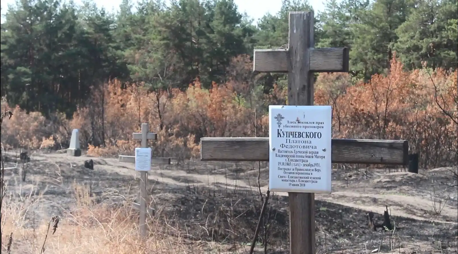 Випалена земля, чорні дерева та згорілі хрести – так сьогодні виглядає місце поховання священнослужителів початку XIX століття та братські могили солдат, які загинули при визволенні міста в роки Другої світової. Кропивничанин Дмитро Трушин працює неподалік цвинтаря. Припускає, зайнялося не випадково - тут бавилися сірниками діти. Дивується цинізму містян, які не доглядають старе кладовище: