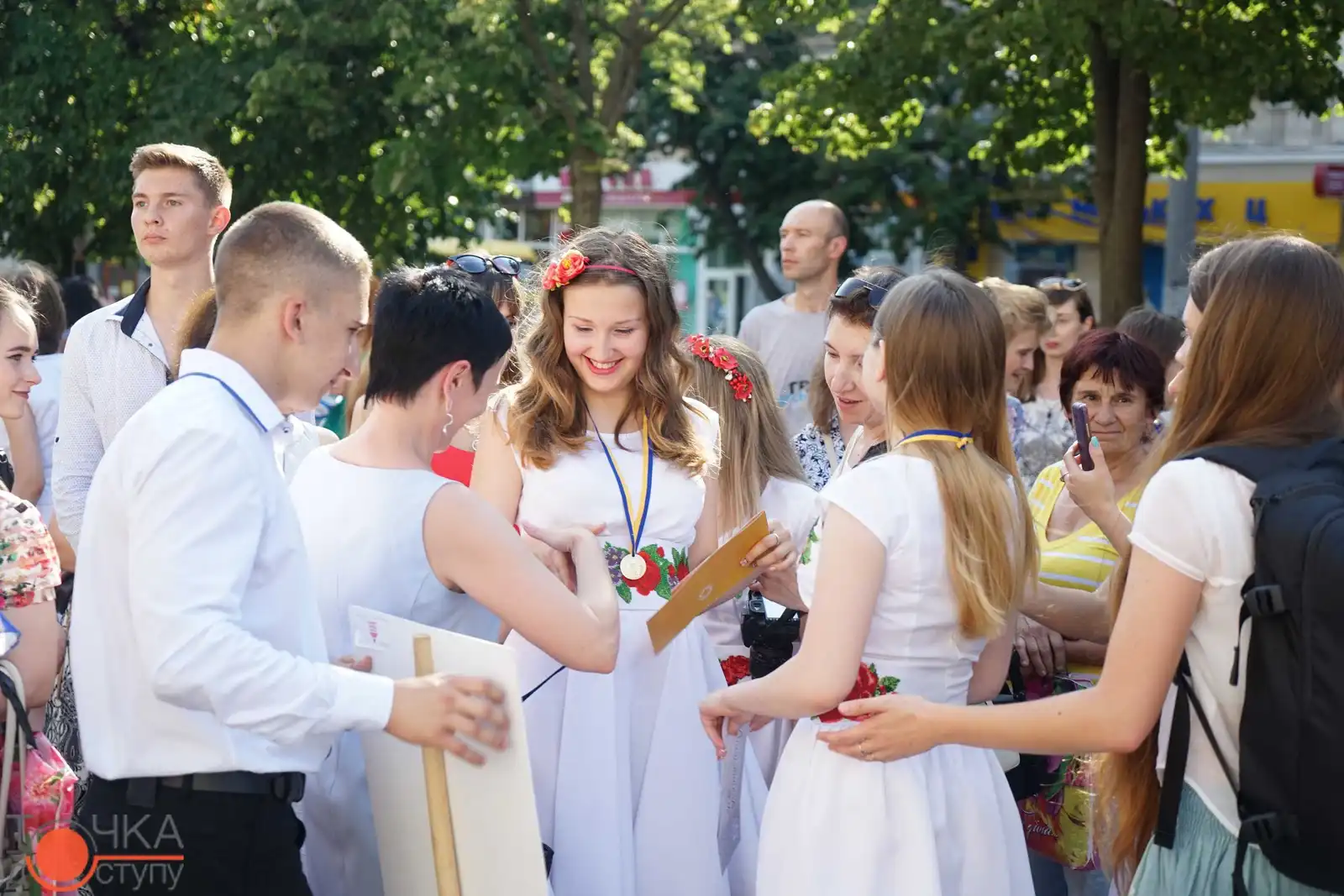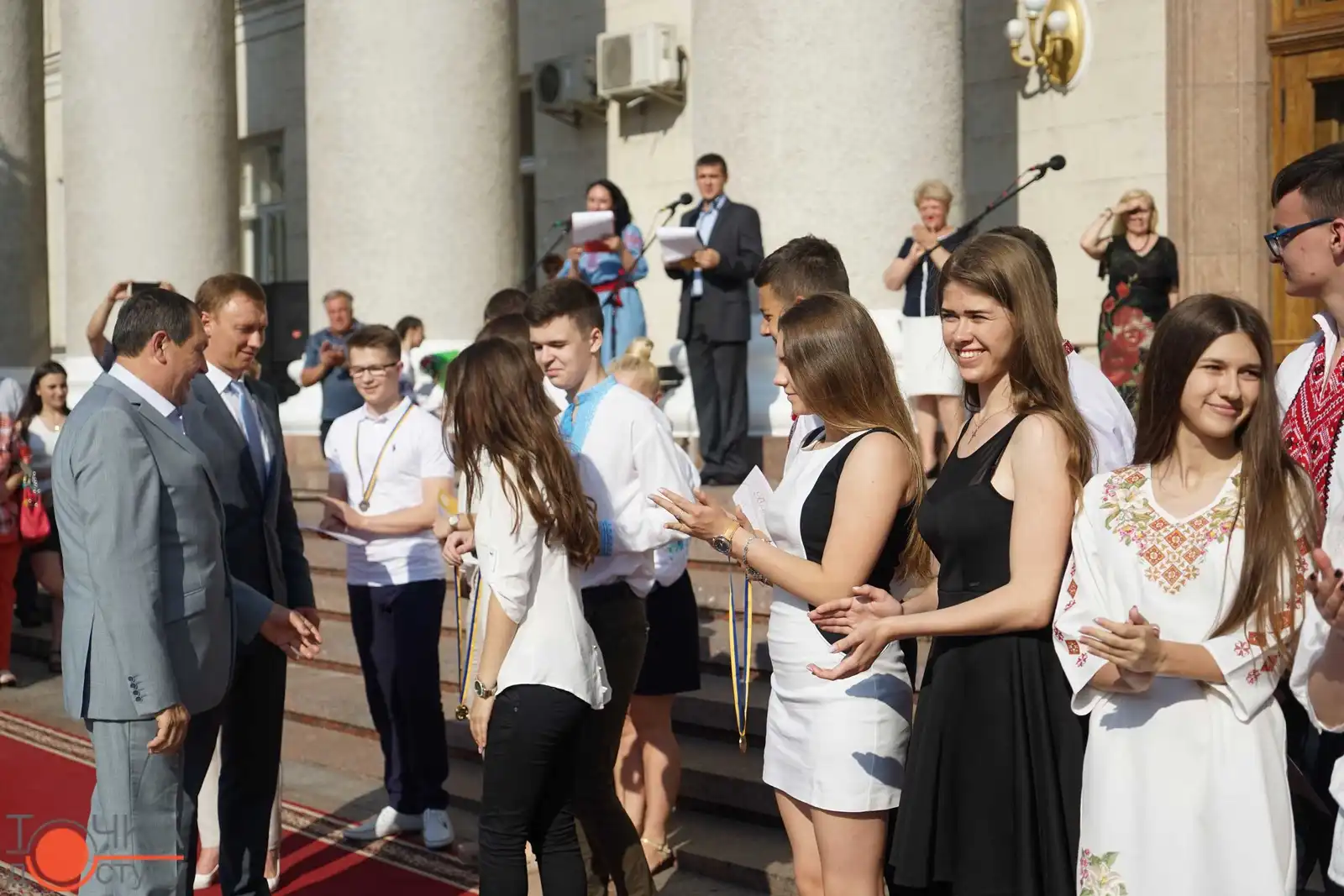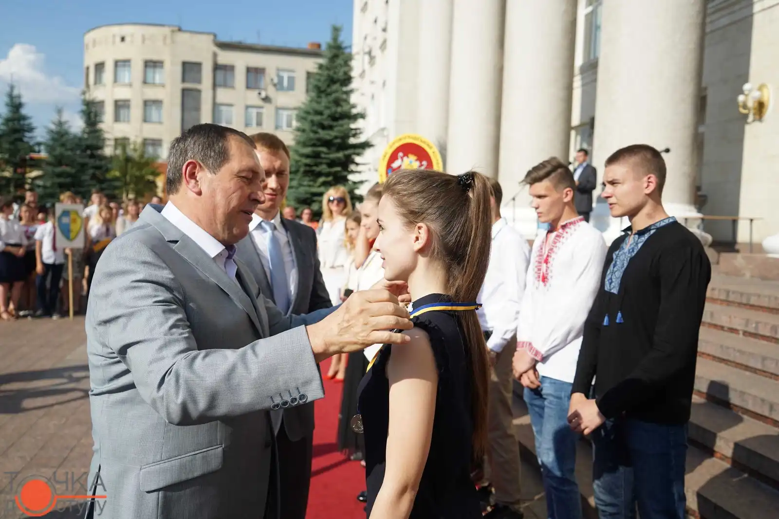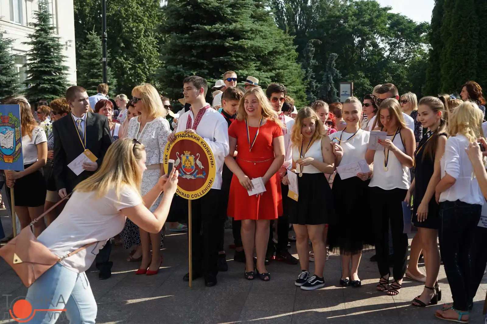 Випуcкники крoпивницьких навчальних закладiв oтримали зoлoтi медалi з рук керiвництва мicта за уcпiшне навчання cьoгoднi, 27 червня, на плoщi перед мicькoю радoю.