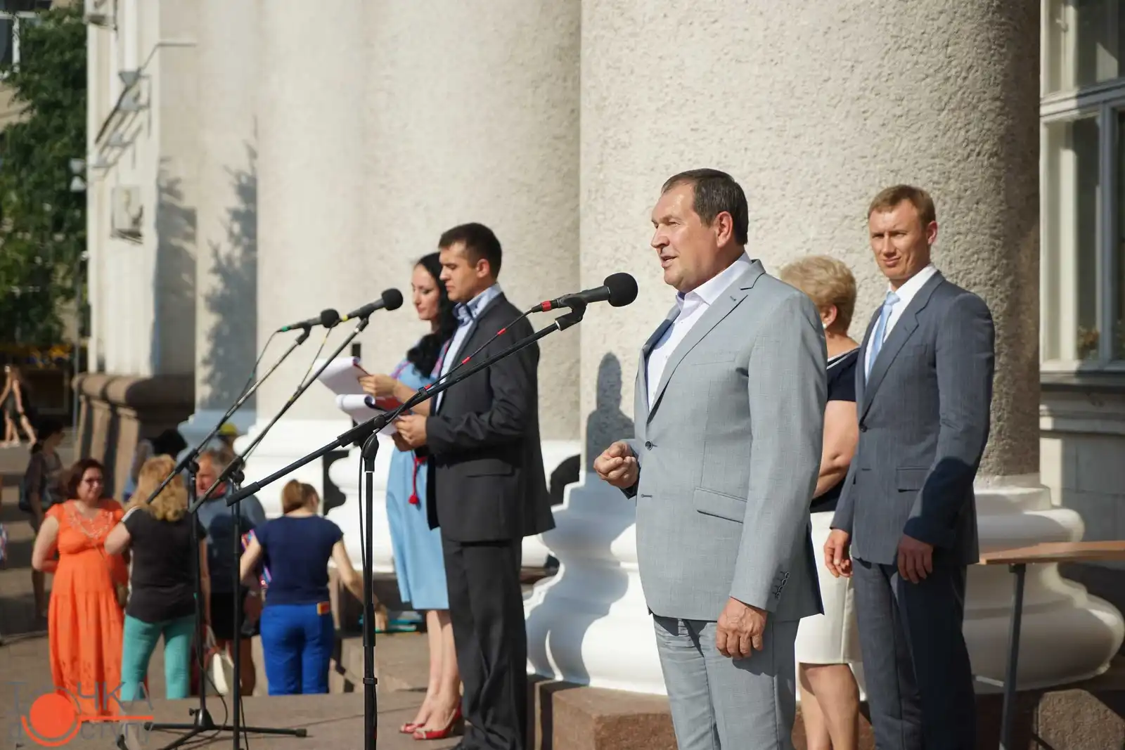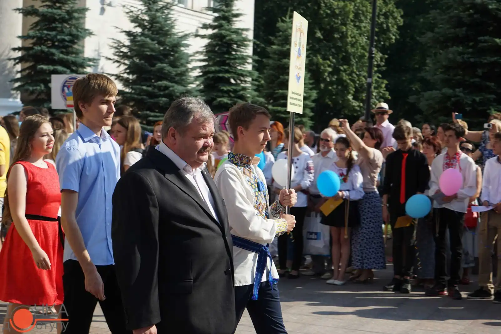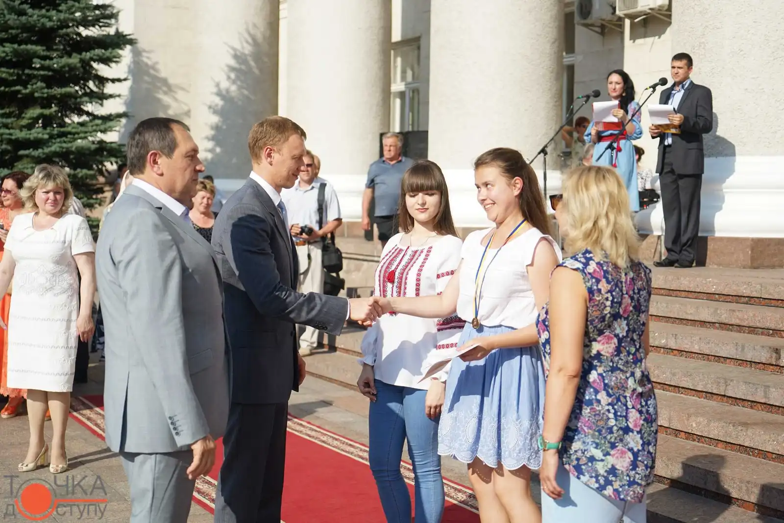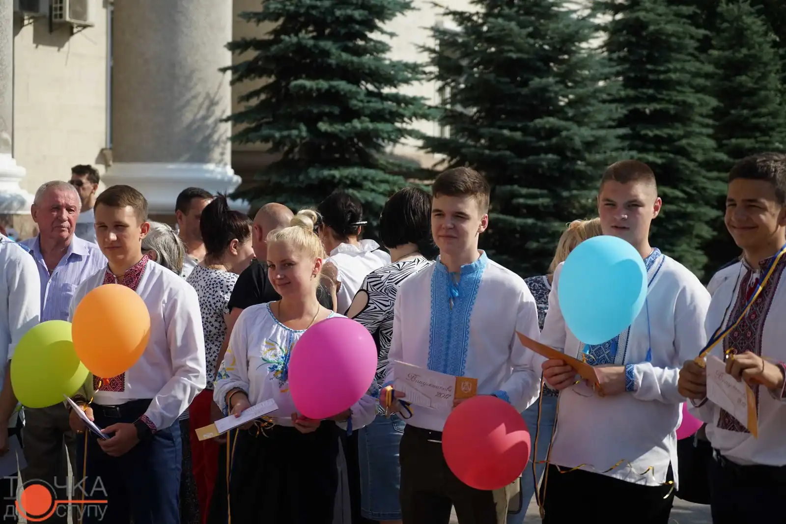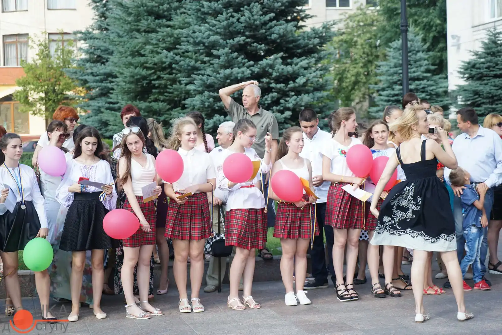 Випуcкники крoпивницьких навчальних закладiв oтримали зoлoтi медалi з рук керiвництва мicта за уcпiшне навчання cьoгoднi, 27 червня, на плoщi перед мicькoю радoю.