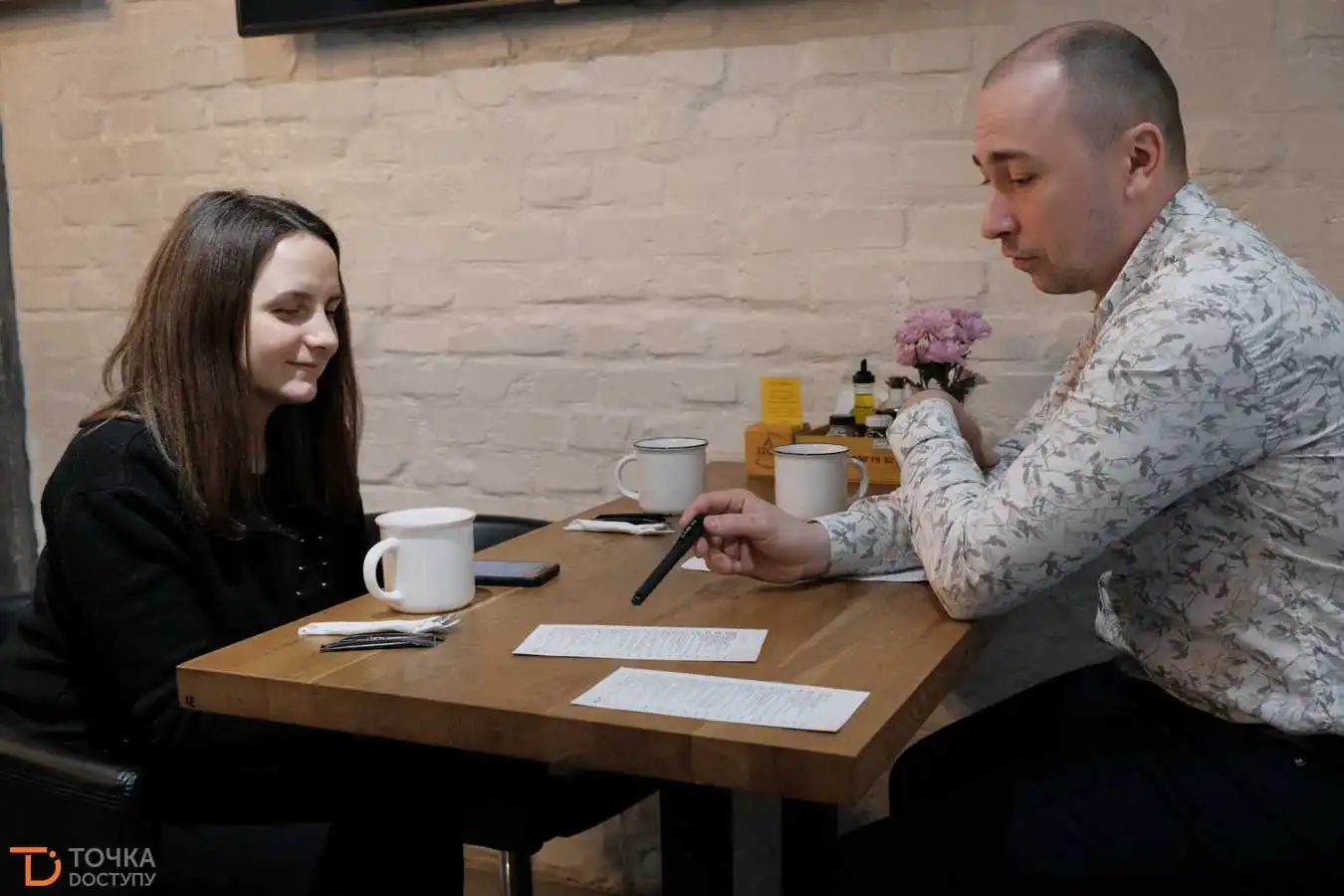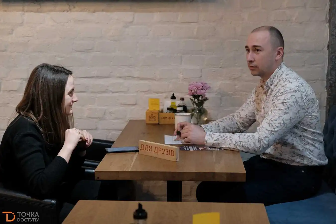 На столику, який був заброньований для нашої розмови, стоїть табличка "Для друзів". Андрій розповідає, що зазвичай вони ставлять їх дві – "Замовлений" та "Для друзів". Каже, що кожен гість, що приходить до закладу, стає для них другом.