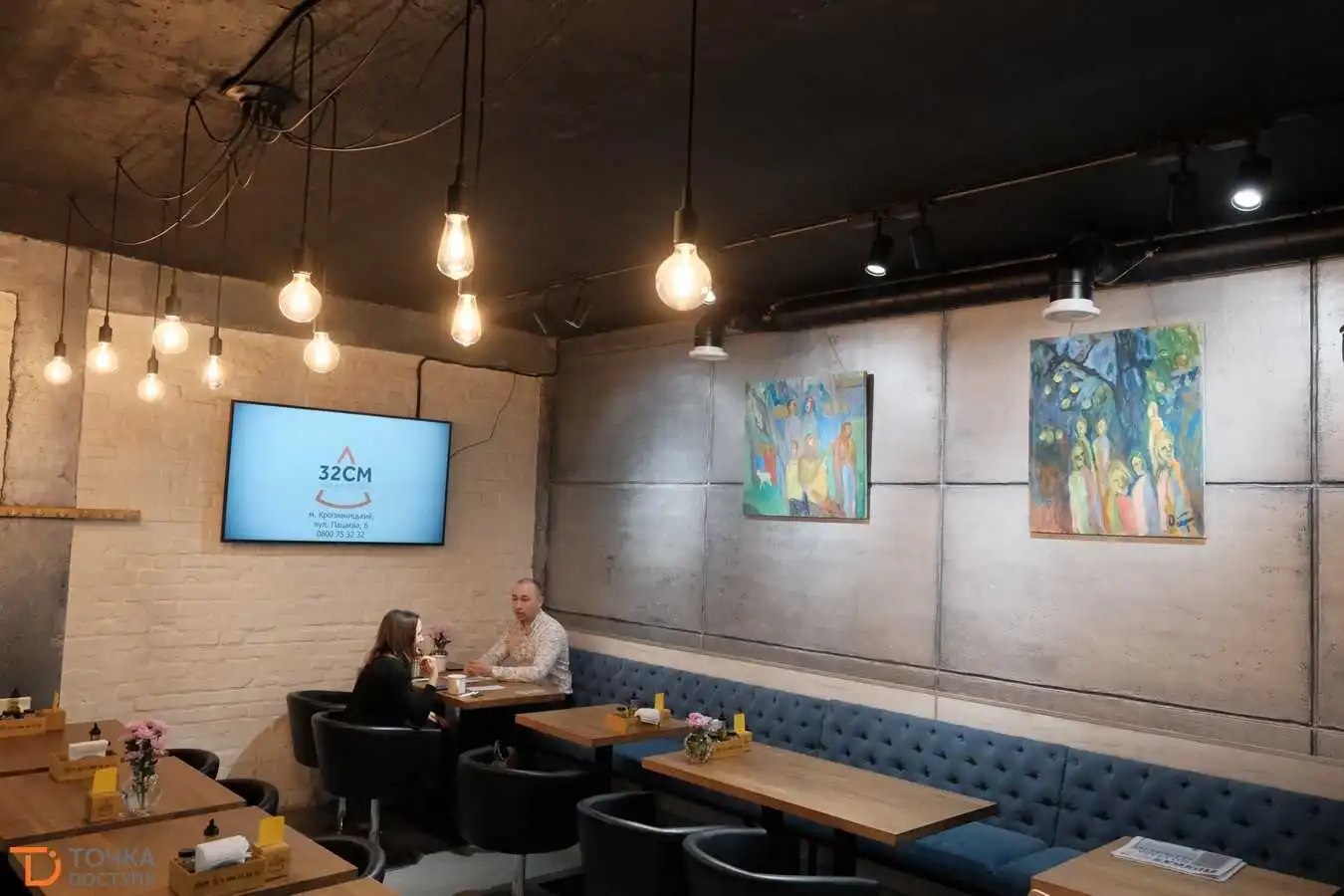 Піцерія "32 см" - єдина піцерія "на дровах" у Кропивницькому. Тут справжня дров’яна піч, зібрана з каменю. В Італії, на батьківщині піци, саме в таких і готують. Ідеальна піца випікається за півтори хвилини при температурі не менше 400 градусів. Тут же дотримуються цієї обов’язкової умови. Загалом на її приготування витрачається близько 5 хвилин – це вже разом із розкаткою тіста й приготуванням начинки.