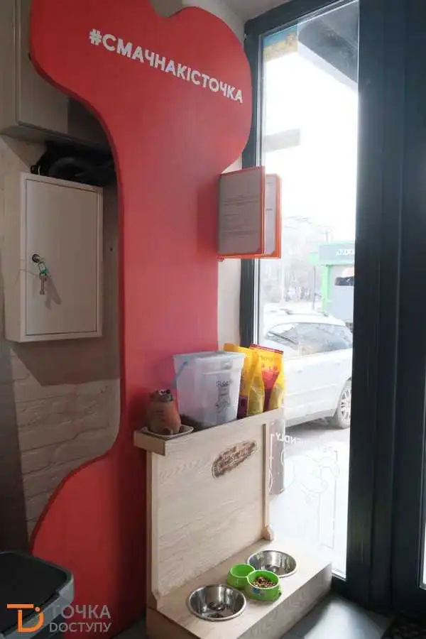 Крім того, піцерія стала першим закладом, який офіційно став дружнім до тварин: тут встановили локацію з кормом та водою для домашніх улюбленців відвідувачів. Між іншим, стенд-кісточку Андрій Лейбенко виготовив також власноруч.