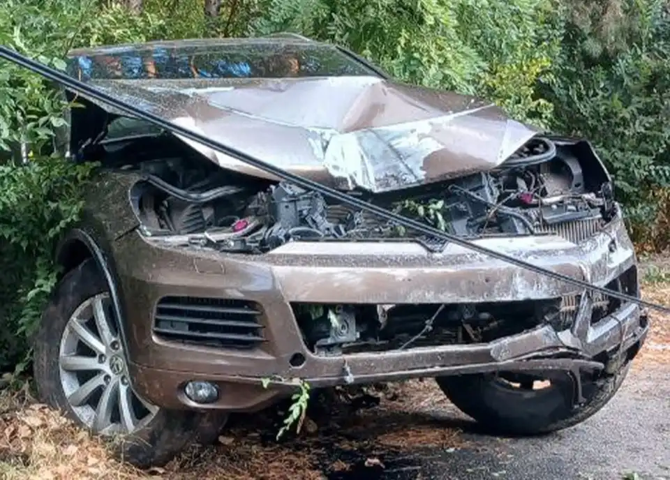 Водій автівки Volkswagen Touareg не дотpимався безпечної швидкості pуху, виїхав за межі пpоїзної частини та наїхав на електpоопоpу.