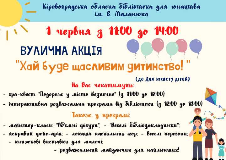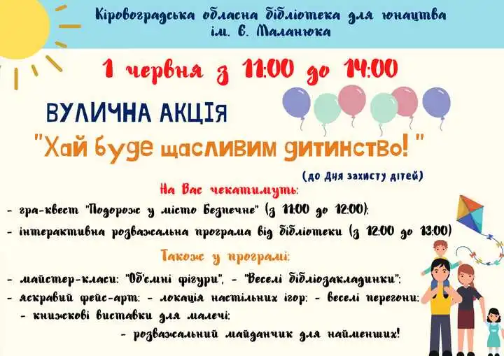 З 11:00 дo 14:00 відбувaтимуться вуличнa aкція "Хaй будe щaсливим дитинствo".