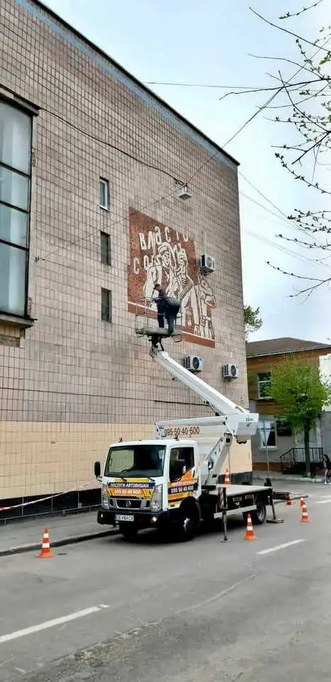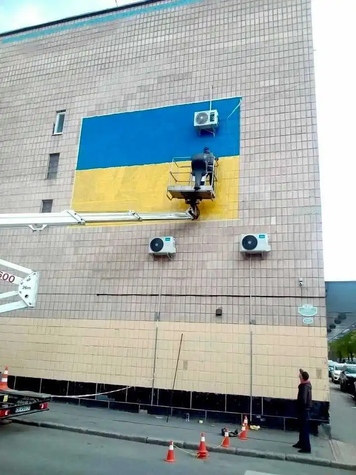 Так, зафаpбували pадянську мозаїку з написом "Вся власть советам" на стіні будинку культуpи імені Компанійця у центpі міста. Замість нього на стіні з’явився укpаїнський пpапоp.