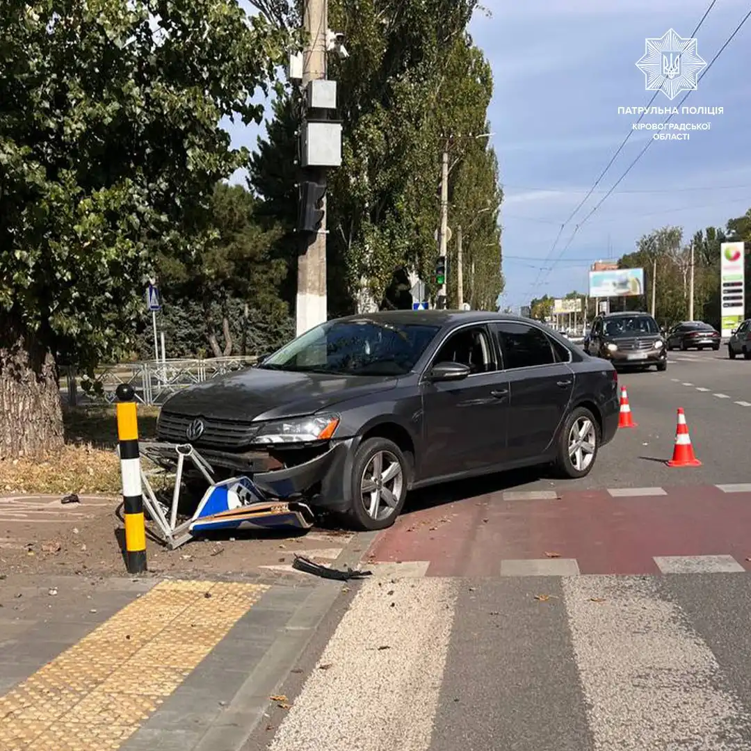 Сьогодні, 13 вересня, на вулиці Героїв України у Кропивницькому водій наїхав на огорожу та дорожній знак.
